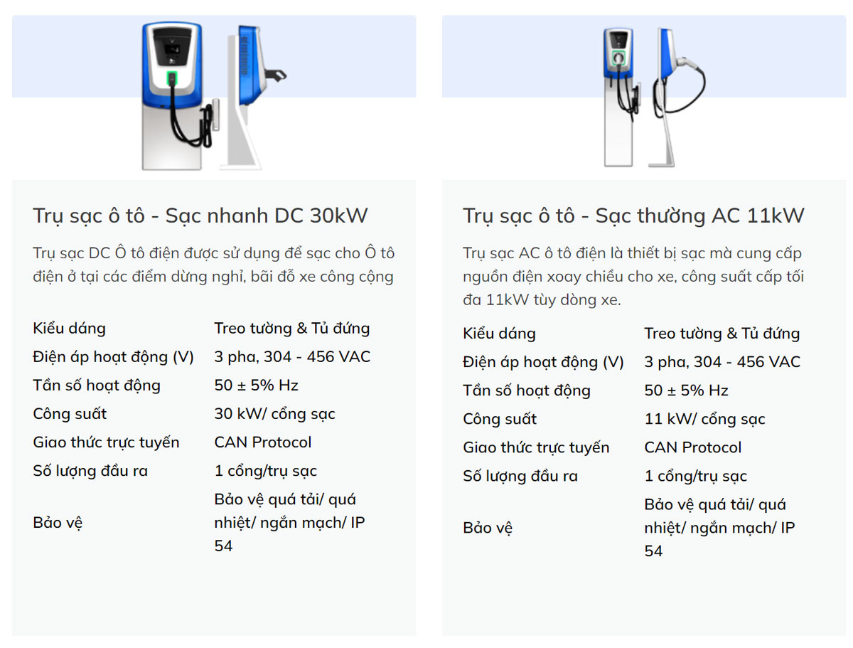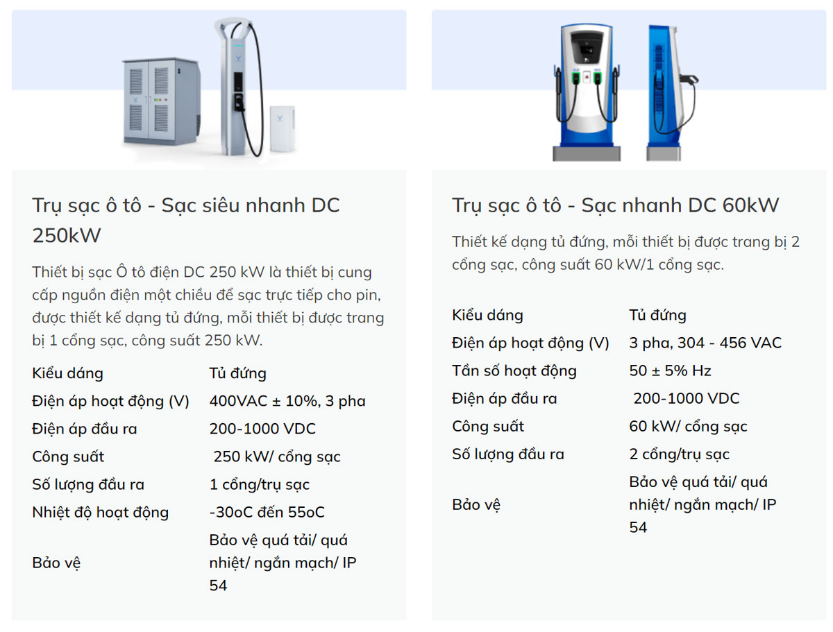 Trạm sạc dành cho ô tô và xe máy điện VinFast có thể lắp đặt tại khu vực đỗ xe hiện có mà không làm thay đổi công năng của bãi đỗ xe, thiết bị sạc là do VinFast sản xuất, chế tạo với hình thức đẹp, hiện đại, tuân thủ theo tiêu chuẩn của Châu Âu về an toàn điện.